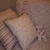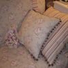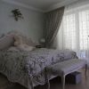 В той же цветовой гамме, подобраны декоративные карнизы фабрики CasaValentina (Италия). Лаконичность и простоту стильных карнизов подчеркивает подобранный текстиль на портьеры и покрывало. Английская портьерная ткань Stavley в стиле Прованс с хлопковой выработкой была дополнена нарядным тюлем с большим принтом фабрики ChristianFischbacher. Декоративная тесьма и бахрома фабрики Houles(Франция) украсила подушки и покрывало на кровати.