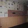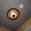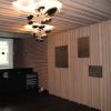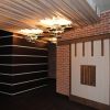Гостиную украшает стеновая и потолочная панель оригинального дизайна. В потолочной панели сделаны круглые отверстия под светильники, также в ней есть дверка для люка кондиционера практически не заметная снизу.