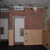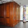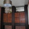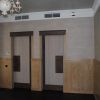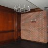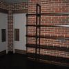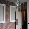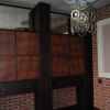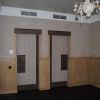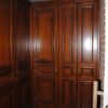 По всей квартире установлены массивные двери отделанные шпоном и украшенные металлическими накладками с декоративными гвоздями и цилиндрическими ручками. Верхняя часть дверного проема отделана металлическим наличником в стиле дверных накладок.