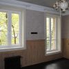 Детские комнаты отделаны короткими стеновыми панелями ламбри. Фасады гардеробных шкафов при детских повторяют отделку стеновых панелей.
