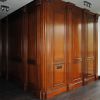 Спальня отделана деревянными панелями буазери в классическом стиле. В таком же стиле выполнена гардеробная при спальне.