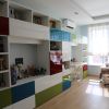 Мебель: Подобран стеллаж, фабрики Jasse, с глянцевыми дверками, и деревянной отделкой открытых частей, изготовлен по индивидуальным размерам помещения. Компьютерный столик, с прикроватными тумбочками в цвет фасадов стеллажа.