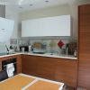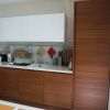 Мебель на кухне итальянской фабрики Cesar, модель Yara, в отделке белый глянцевый лак и Тик. В сочетании двух контрастных отделках, мебель в не большом помещении, создала уют и визуально расширила пространство. Обеденный стол и стулья фабрики Eurosedia, завершили интерьер кухни. Гнутый профильный карниз, фабрики S.Gliss, спрятан за декоративным текстилем тюли Beluga, фабрики Z+R, обрамляет оконный проем, не утяжеляя при этом вид окна.