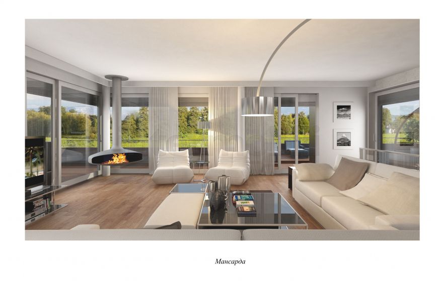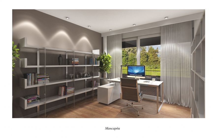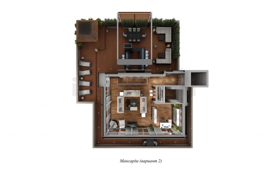 Мансардный этаж состоит из закрытой и открытой зоны.Один из вариантов перед Вами